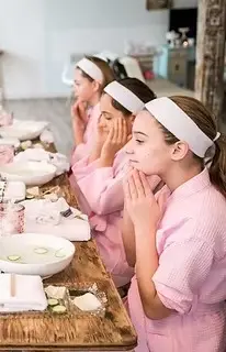 Dès leur arrivée, les enfants sont plongés dans un univers de rêve grâce à notre décoration immersive et notre mobilier confortable. Pour une immersion totale, nous mettons à leur disposition peignoirs et chaussons, garantissant un confort absolu. Le programme, encadré par nos animatrices passionnées, débute par un atelier de soin fait maison où les enfants apprennent à réaliser et à s'appliquer un masque du visage 100 % naturel et gourmand. Ce moment de découverte se prolonge par une pause relaxation, bercée par une musique apaisante et l’incontournable pose de rondelles de concombre sur les yeux.